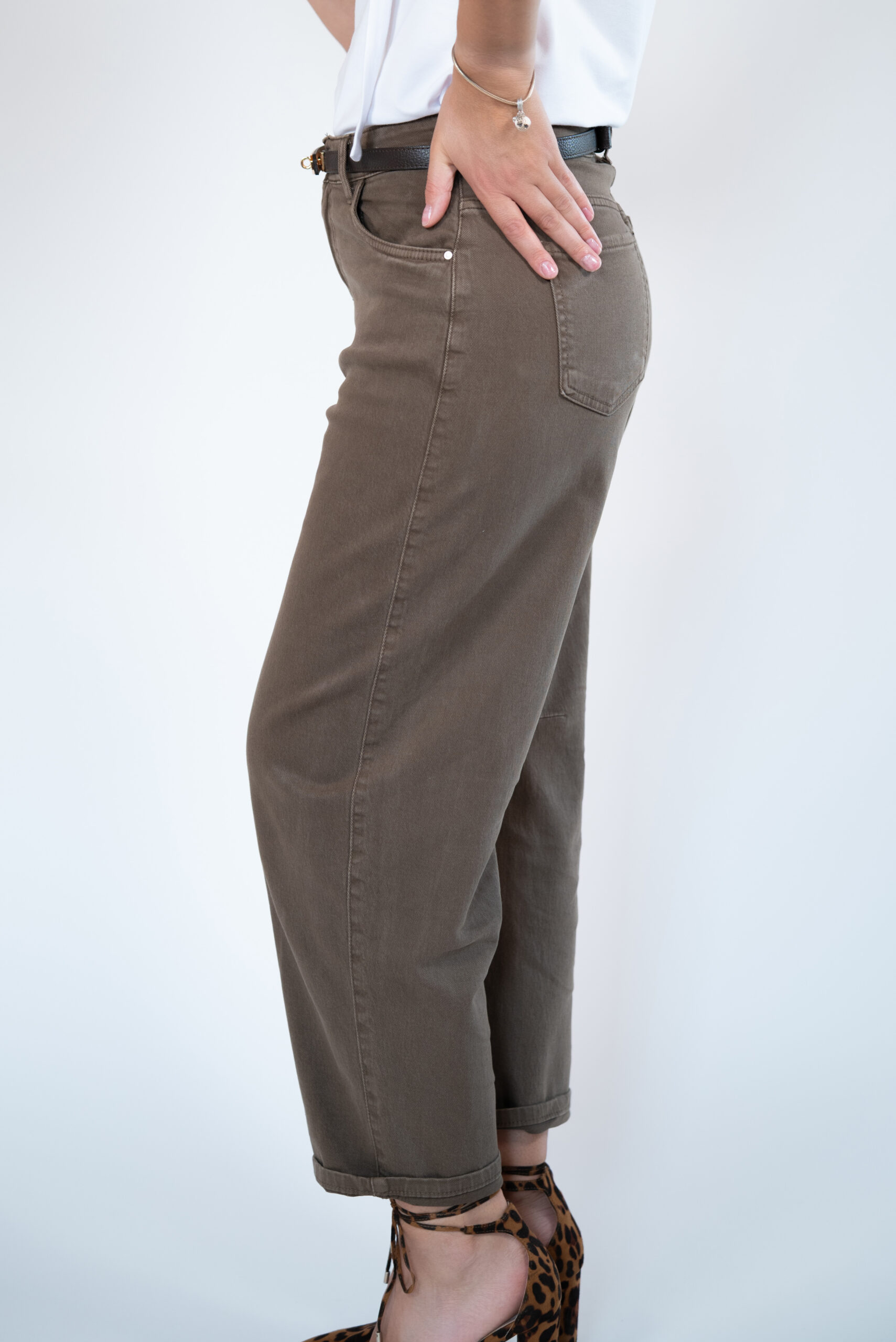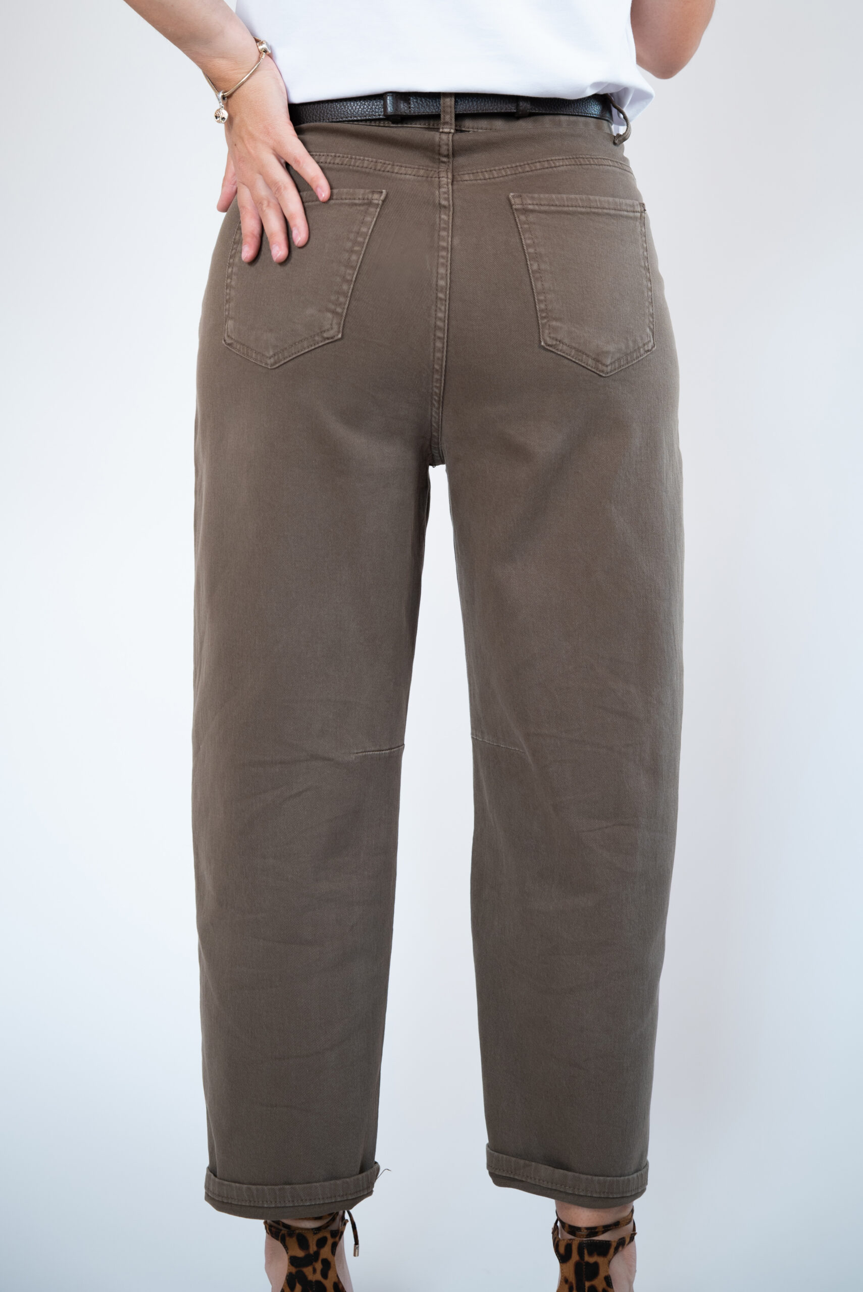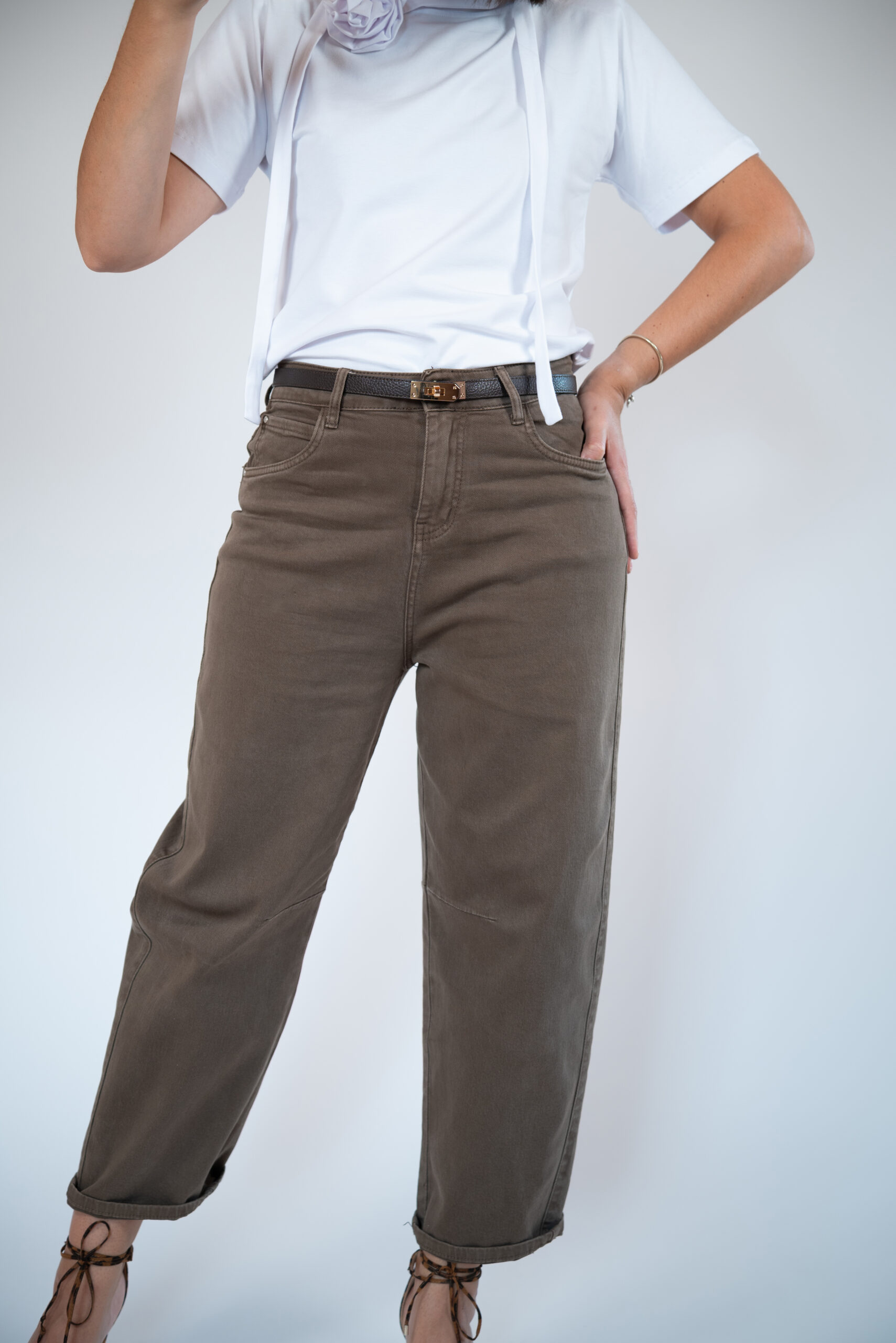 Najmodniejszy fason jeansów w tym sezonie! Pasują niemal każdej sylwetce. Wysoki stan, który przepięknie podkreśla talie. Dopasowane w biodrach, dzięki czemu mimo oversizowego kształtu pośladki są podkreślone i sylwetka nie traci na swojej kobiecości. Rozszerzane nogawki od góry a następnie zwężane ku dołowi. Całość w przepięknym kkolorze mlecznej czekolady i niesamowicie miękkim materiale jeansowym , co sprawia że komfort ich noszenia jest niezwykle wysoki. Wspaniałe w zestawieniu z koszulą lub krótkim t-shirtem.