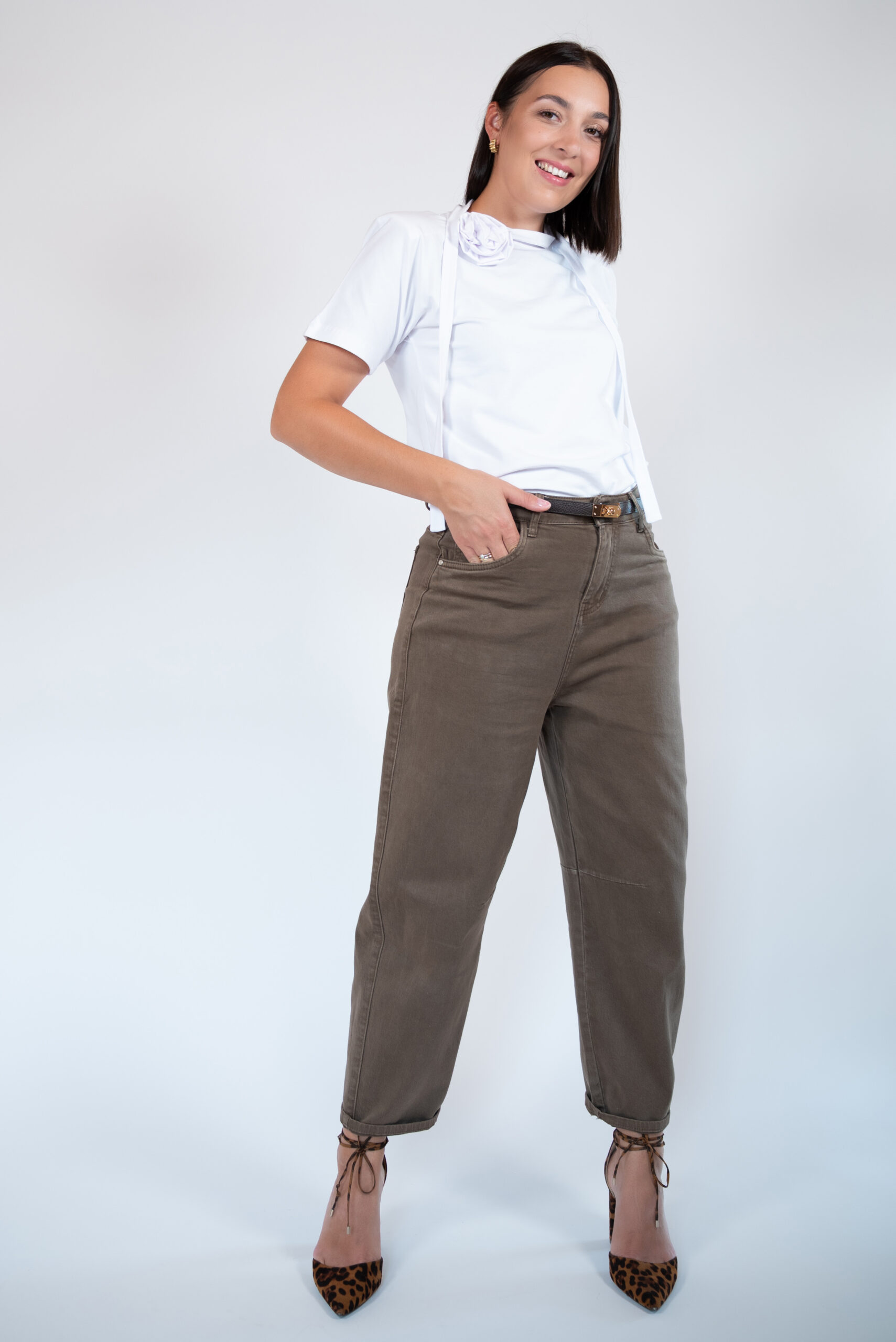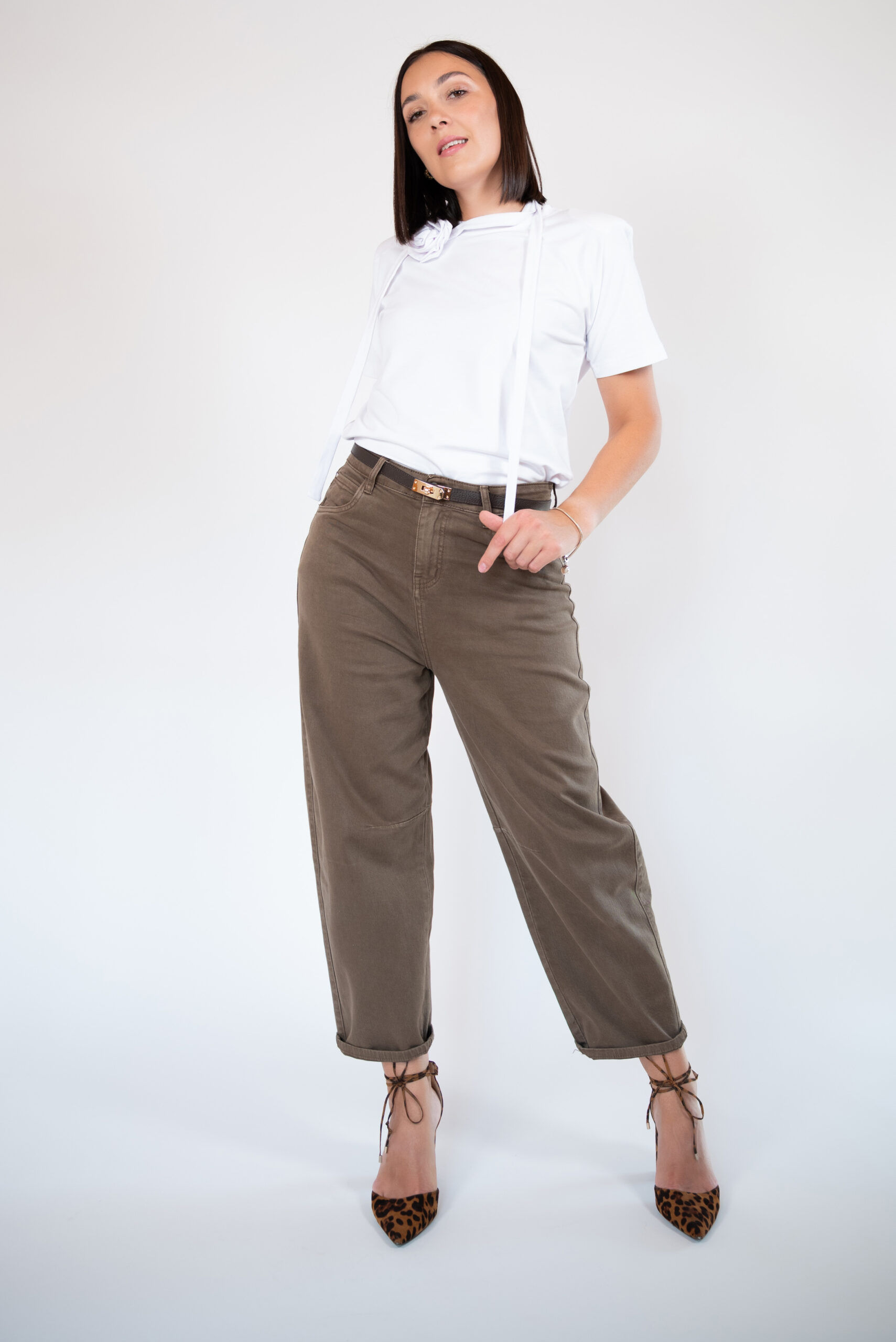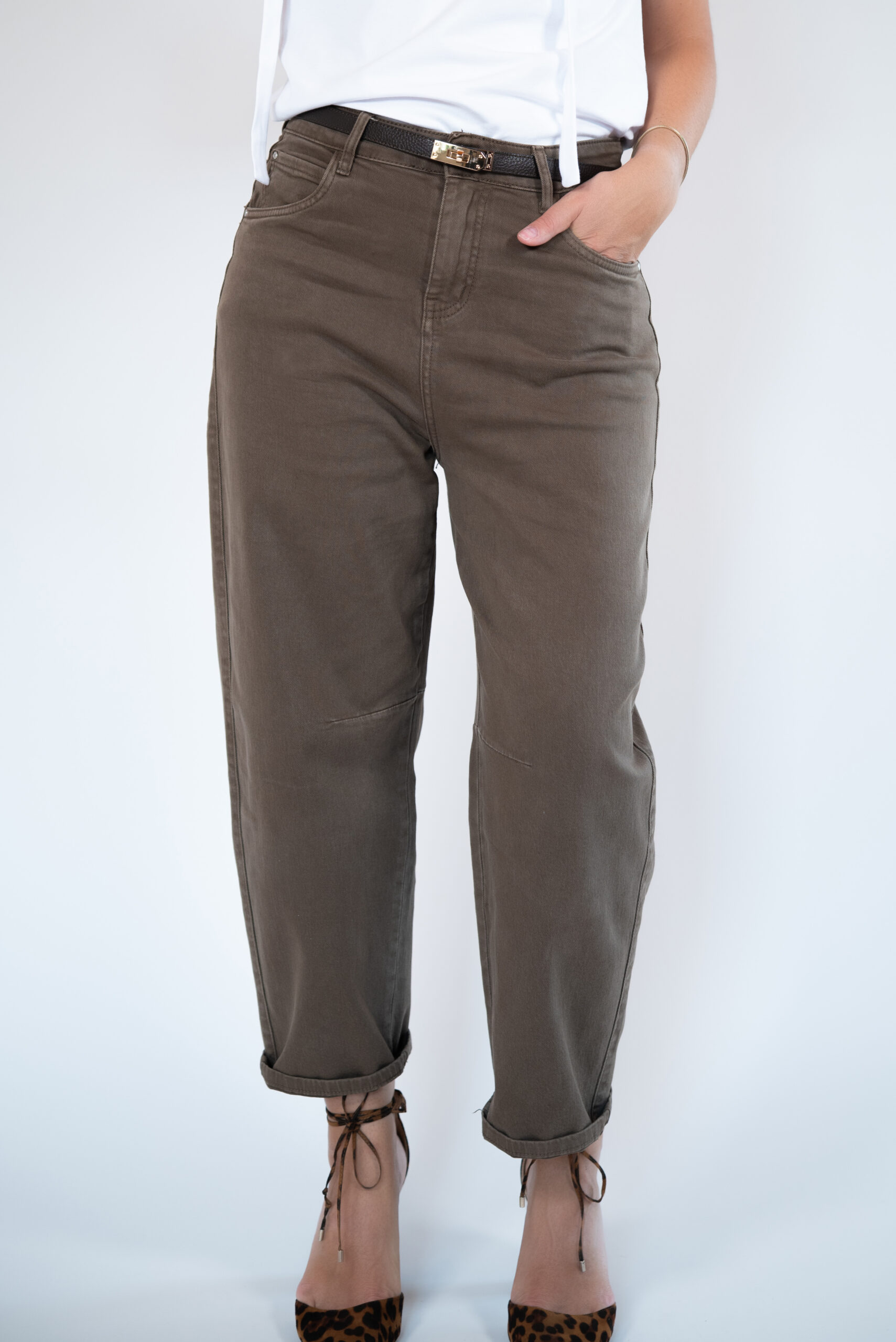 Najmodniejszy fason jeansów w tym sezonie! Pasują niemal każdej sylwetce. Wysoki stan, który przepięknie podkreśla talie. Dopasowane w biodrach, dzięki czemu mimo oversizowego kształtu pośladki są podkreślone i sylwetka nie traci na swojej kobiecości. Rozszerzane nogawki od góry a następnie zwężane ku dołowi. Całość w przepięknym kkolorze mlecznej czekolady i niesamowicie miękkim materiale jeansowym , co sprawia że komfort ich noszenia jest niezwykle wysoki. Wspaniałe w zestawieniu z koszulą lub krótkim t-shirtem.