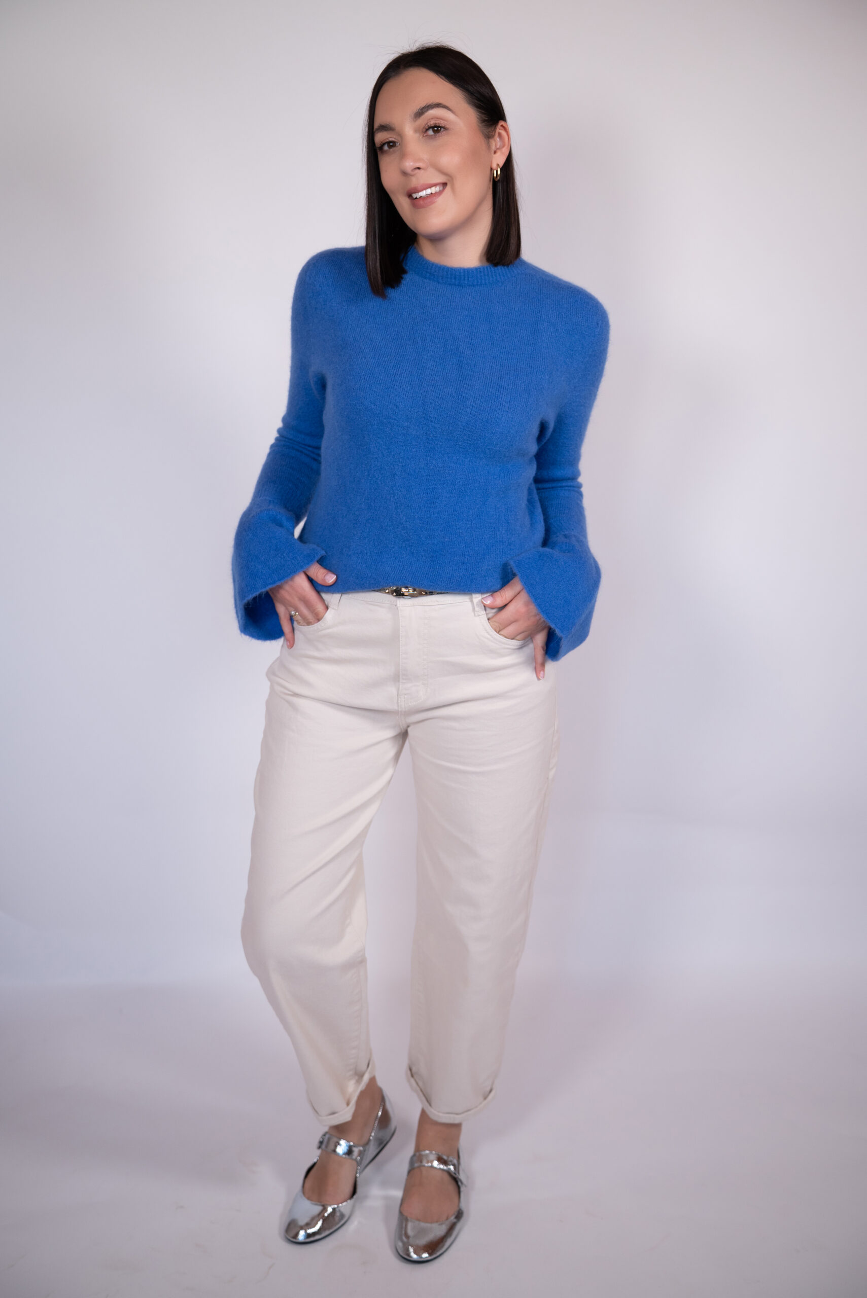 Szerokie rękawy zakończone subtelnym ściągaczem oraz pionowe falbany z przodu dodają jej klasy i romantycznego charakteru. Lekki dekolt pięknie podkreśla szyję. Doskonała na wyjątkowe okazje, ale równie cudownie prezentuje się w połączeniu z jeansami.