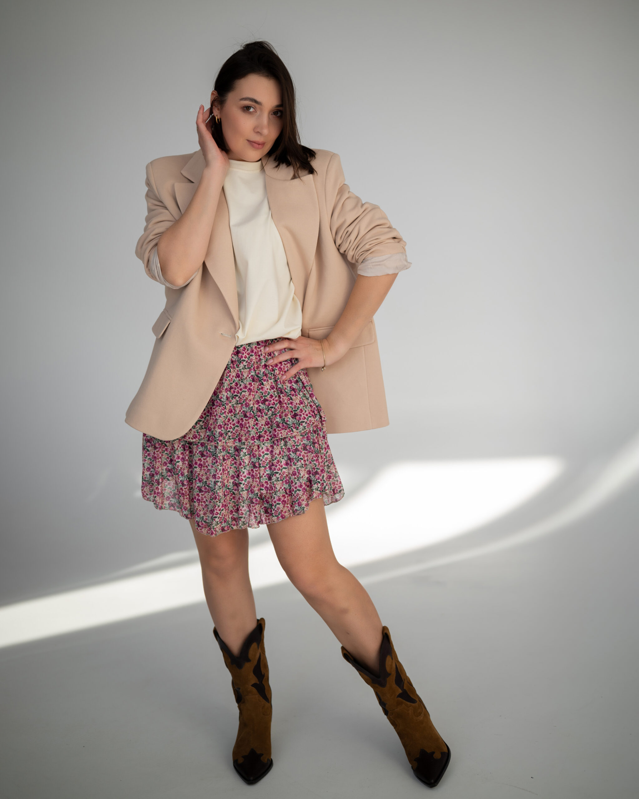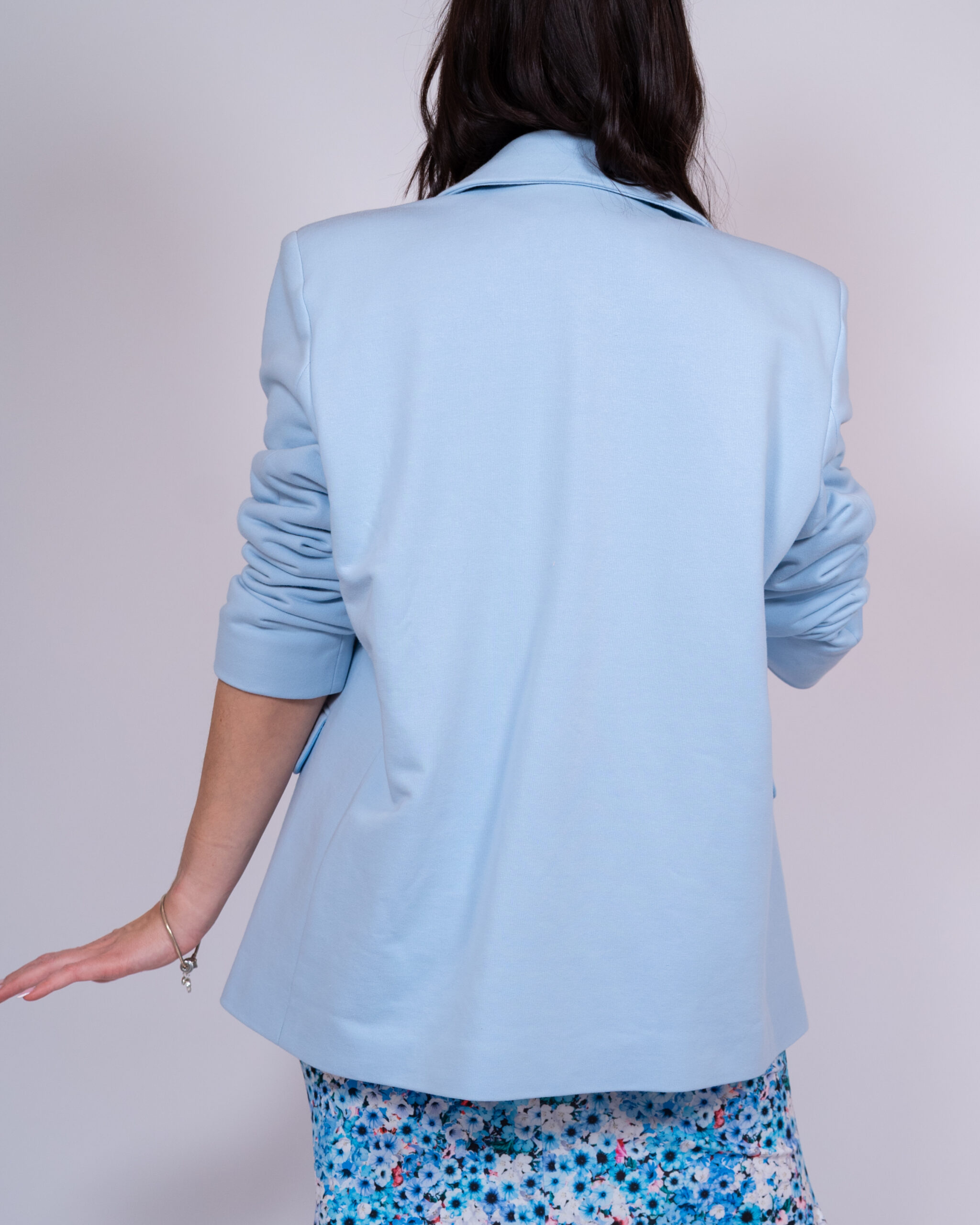 Oversize’owy fason w subtelnym, błękitnym wydaniu – marynarka Kara to niezastąpiony element kobiecej garderoby. Jej szeroka linia ramion, dopasowane rękawy i pudełkowy krój gwarantują wygodę i styl. W połączeniu ze spodniami Lady tworzy elegancki garnitur, który idealnie sprawdzi się w pracy, na spotkaniu czy wyjątkowej okazji. Noszona z jeansami czy spódnicą – doda każdej stylizacji wyrazistości i świeżości.