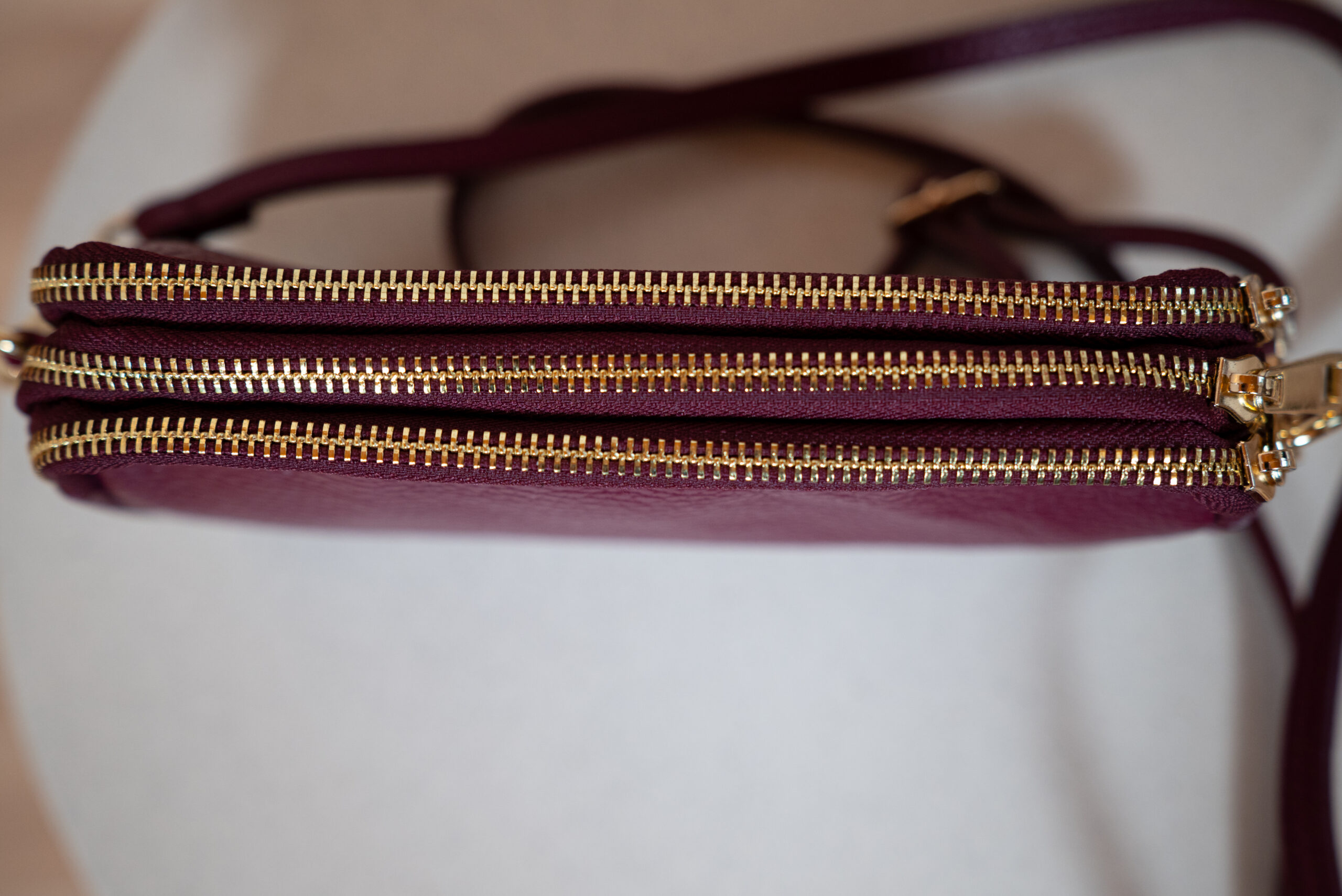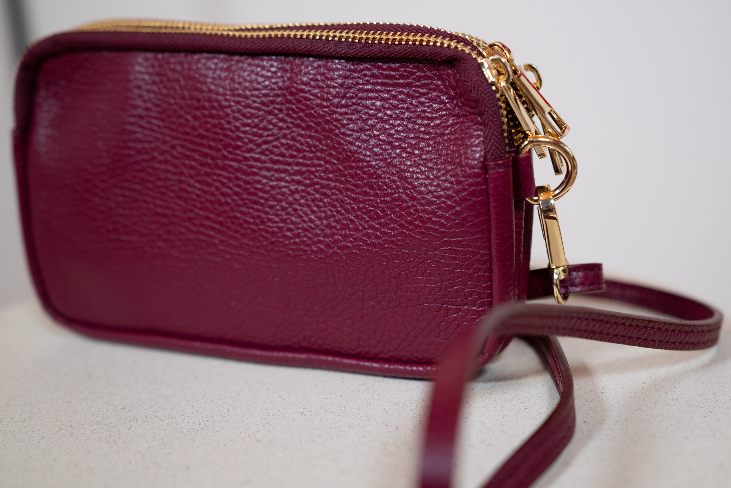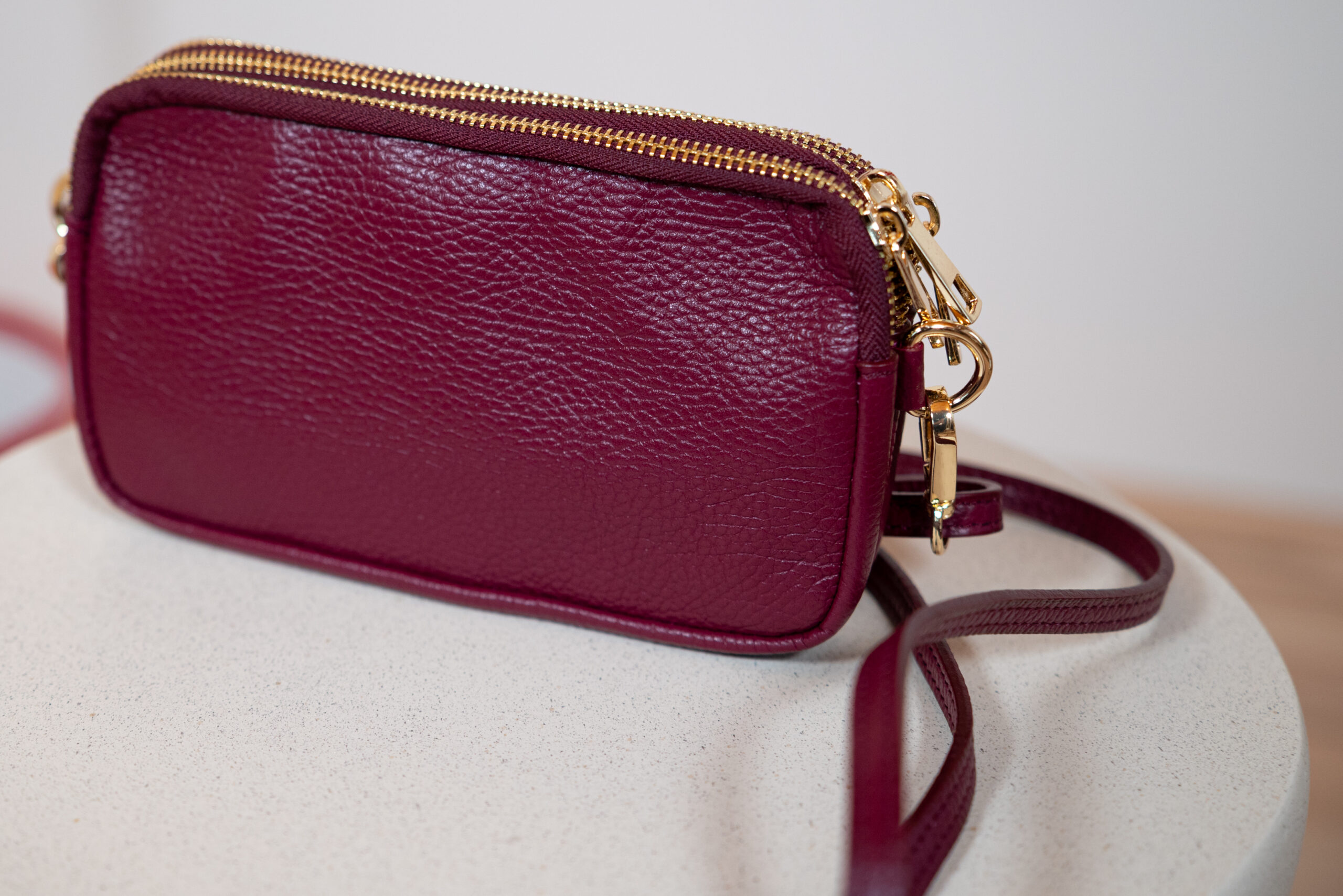 Bordo Trio to mini torebka, która swoją pojemnością zaskoczy niejedną miłośniczkę praktycznych dodatków. Wykonana ze skóry groszkowej w głębokim, eleganckim bordowym kolorze, prezentuje się luksusowo i ponadczasowo. Trzy oddzielne przegrody zapinane na suwak pozwalają idealnie zorganizować przestrzeń wewnątrz i mieć wszystko pod ręką.