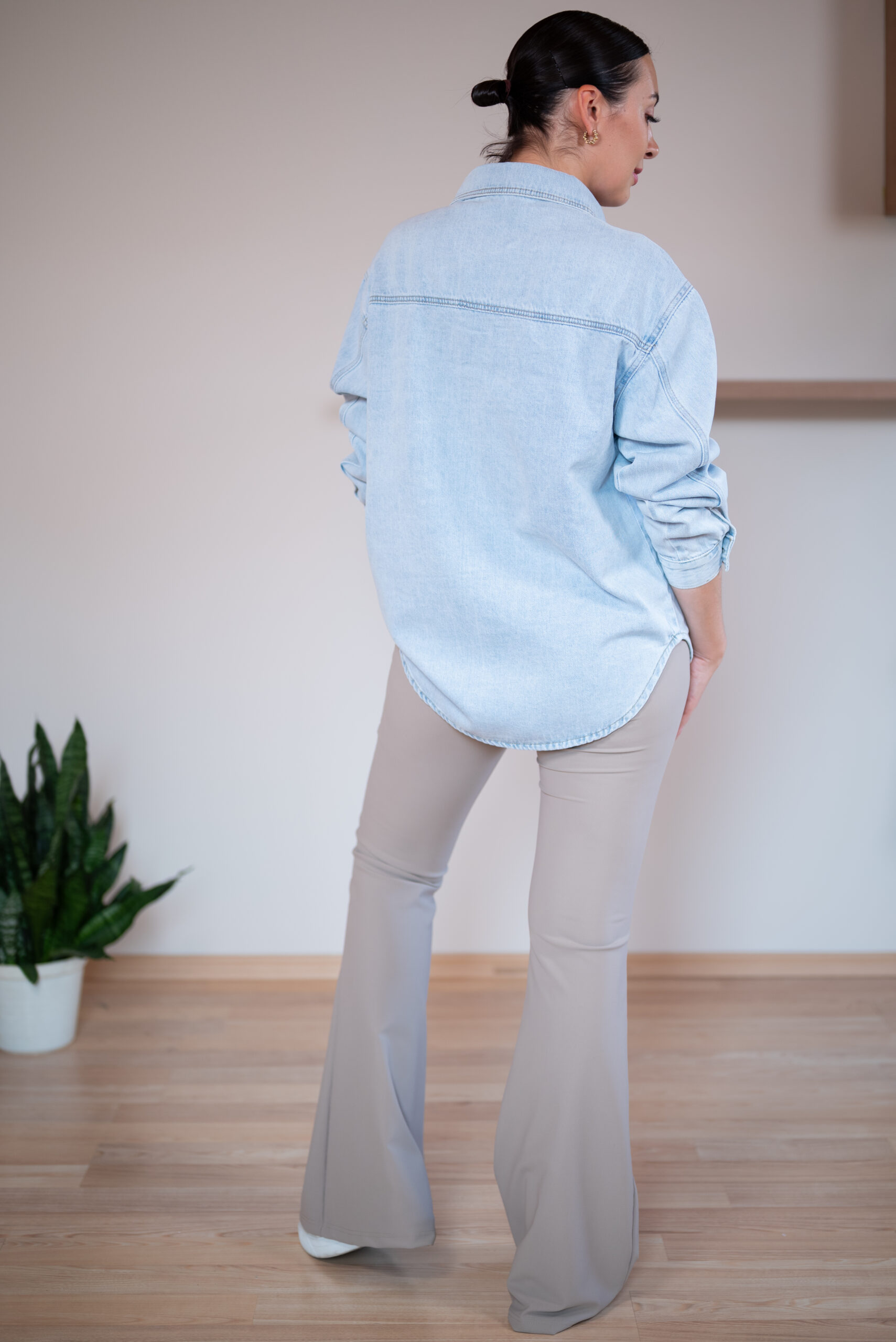 Spodnie KENDALL to model, który łączy w sobie komfort i modowy charakter. Wykonane z miękkiej, prążkowanej dzianiny, pięknie dopasowują się do sylwetki, jednocześnie zapewniając pełną swobodę ruchów. Wysoki stan podkreśla talię i optycznie wydłuża nogi, a marszczone przeszycia z przodu i z tyłu dodają całości wyjątkowego charakteru.Fason dzwonów w wydaniu KENDALL to szerokie, efektownie opadające nogawki, które prezentują się niezwykle lekko i kobieco. Beżowy kolor sprawia, że spodnie są uniwersalne – możesz je z łatwością zestawiać zarówno z eleganckimi koszulami, jak i luźnymi t-shirtami. Połącz spodnie KENDALL z krótkim topem lub body i marynarką oversize, aby uzyskać modny, minimalistyczny look. Na co dzień świetnie sprawdzą się w zestawie z trampkami i basicowym t-shirtem, tworząc stylową, miejską odsłonę komfortu.